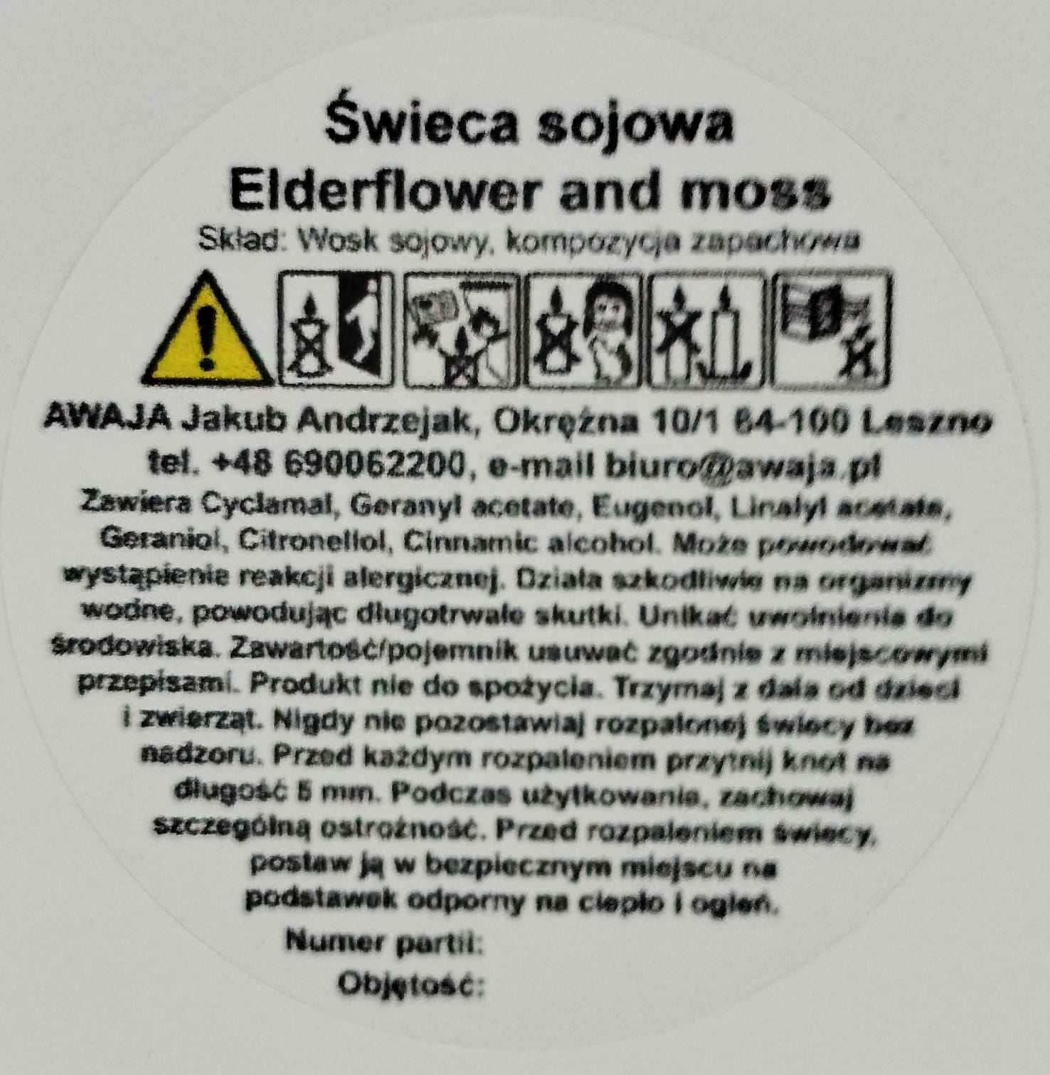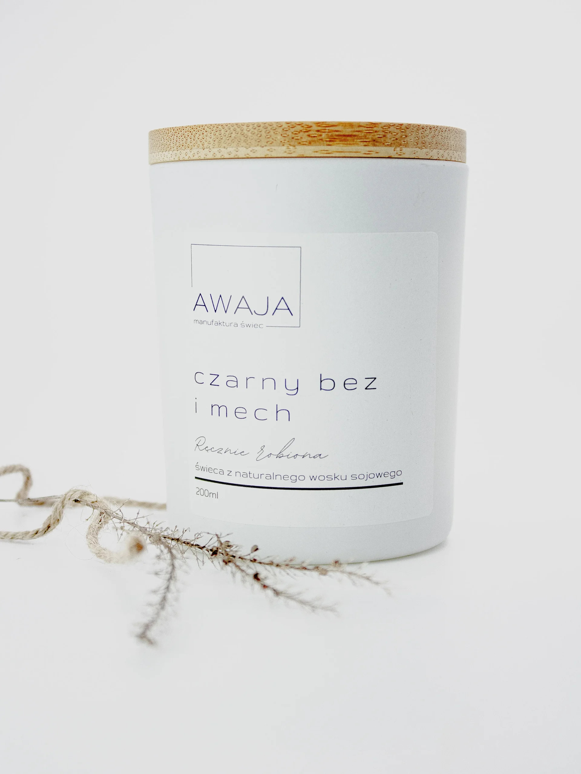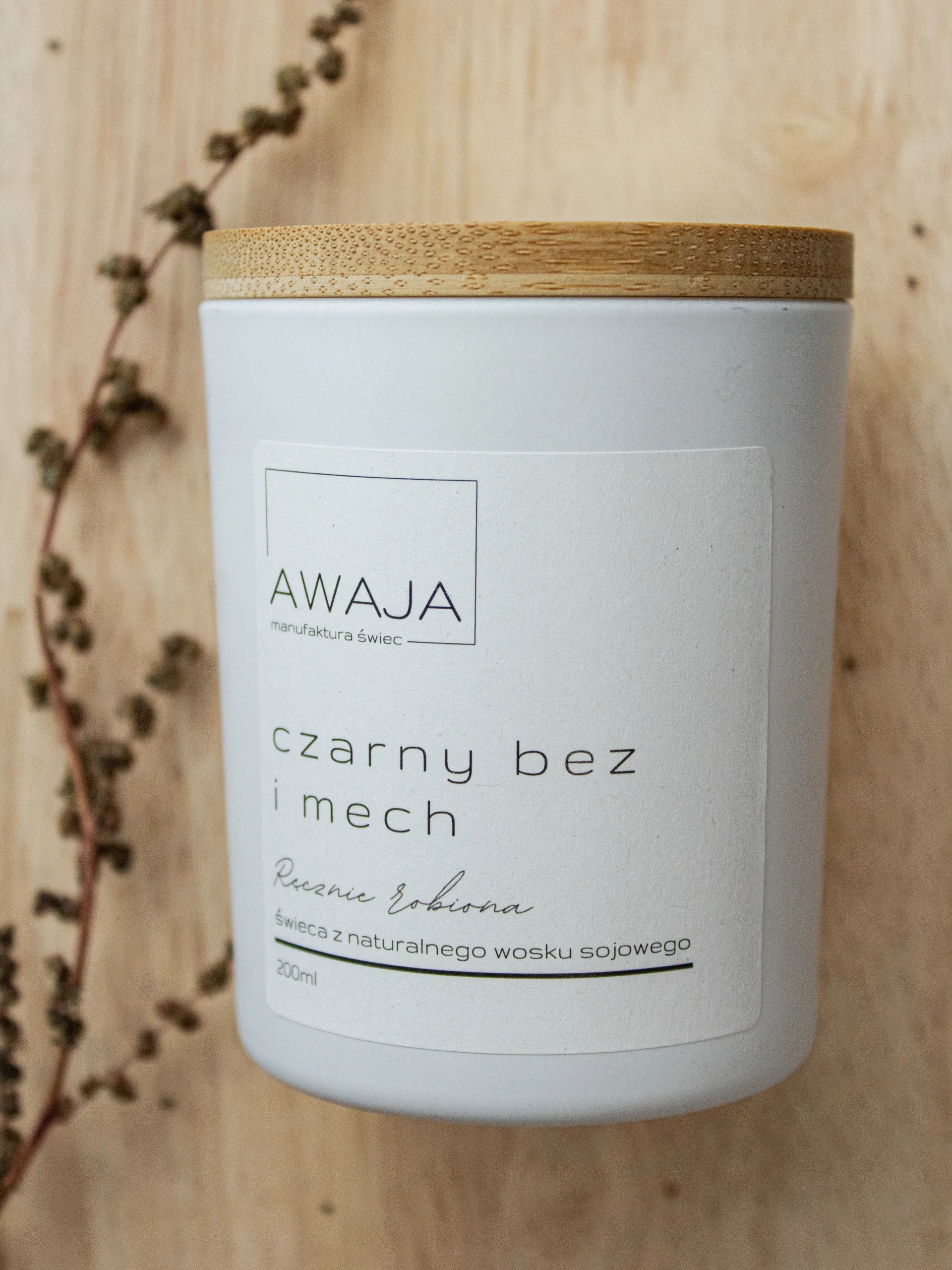 Ręcznie robiona świeca sojowa o zapachu czarnego bzu i mchu