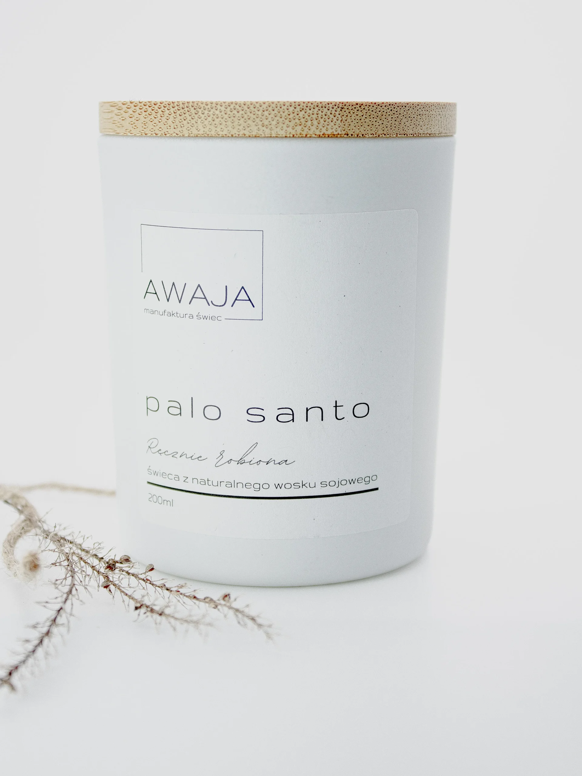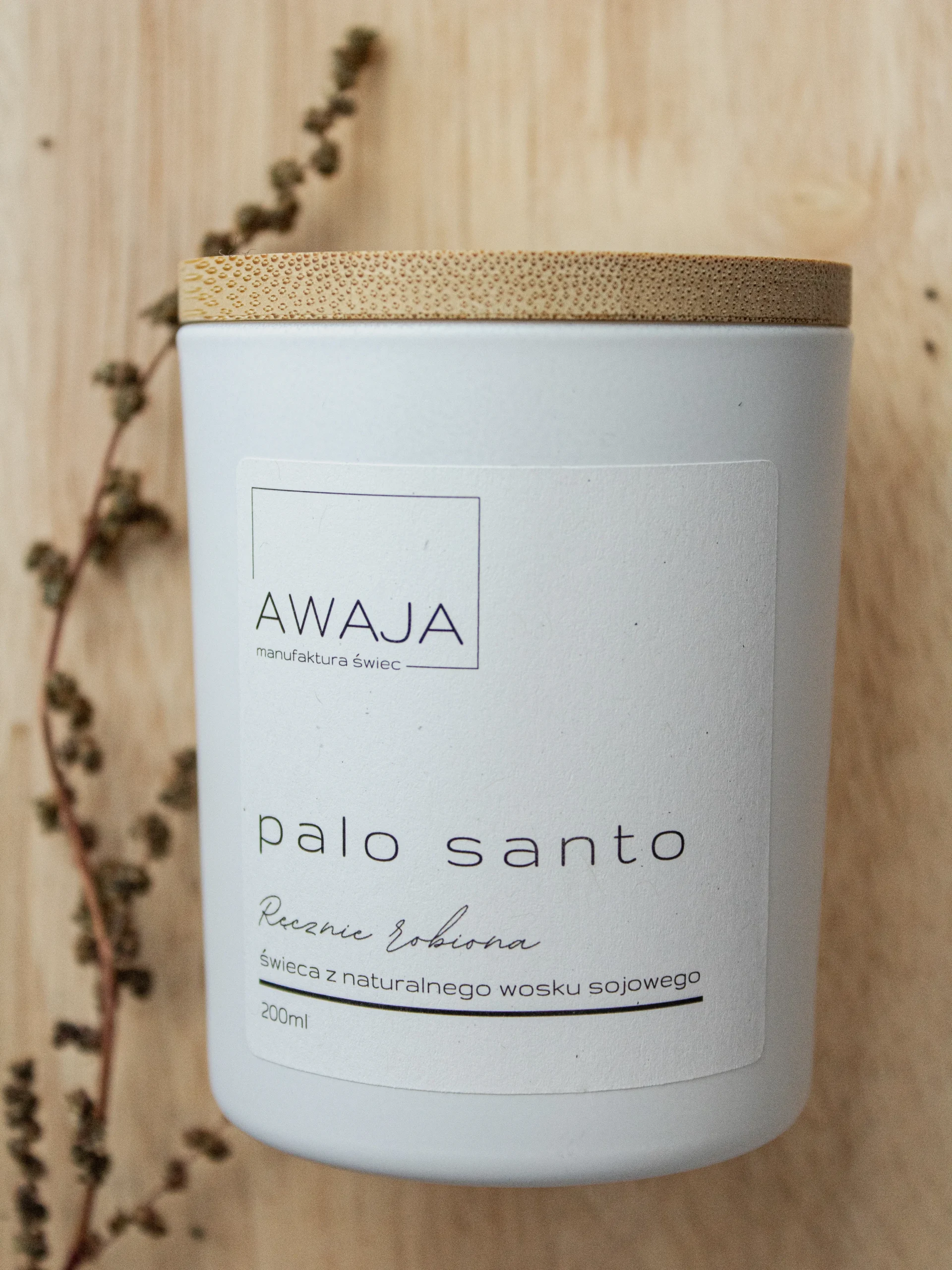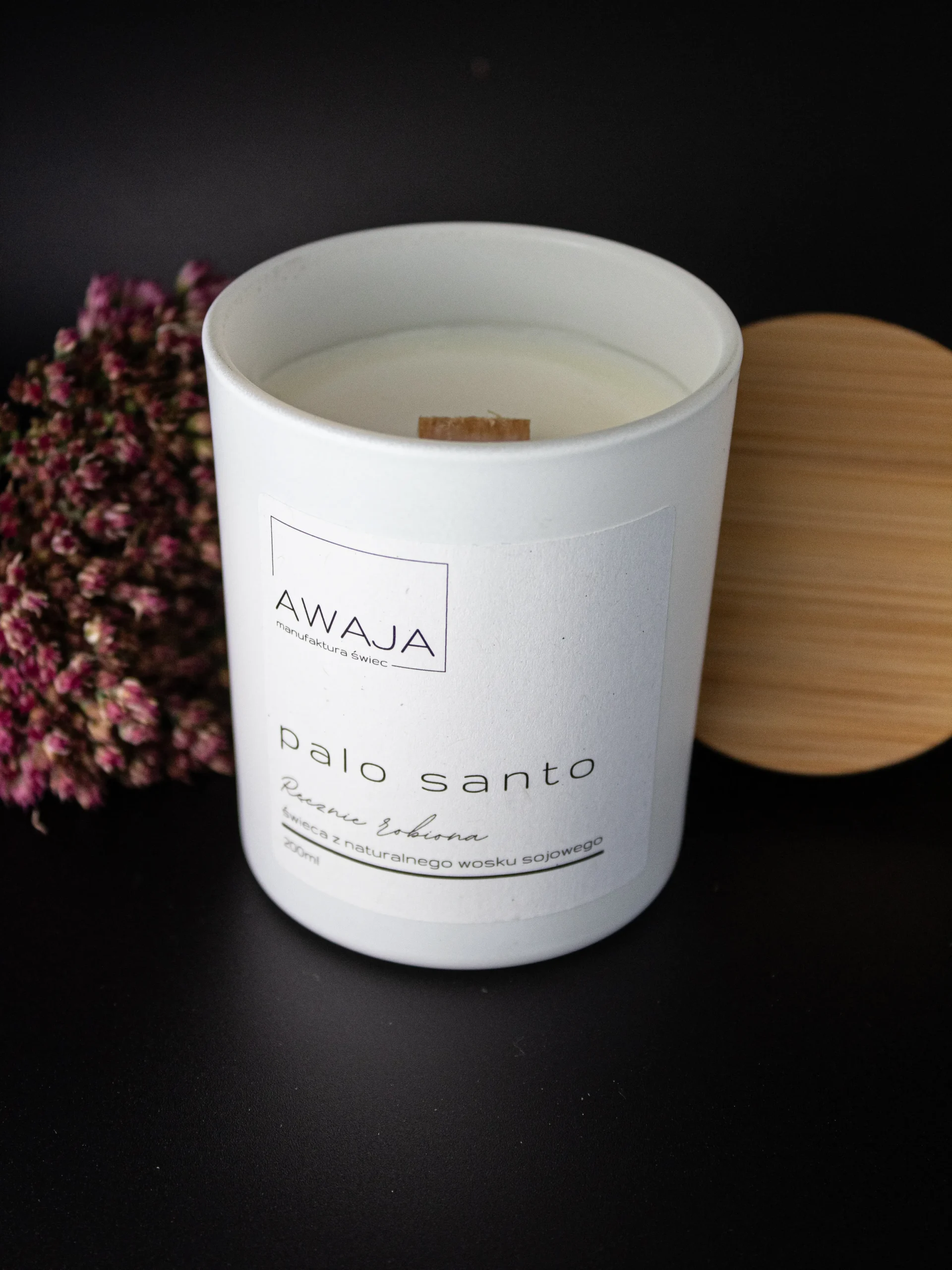 Ręcznie robiona świeca sojowa o zapachu palo santo