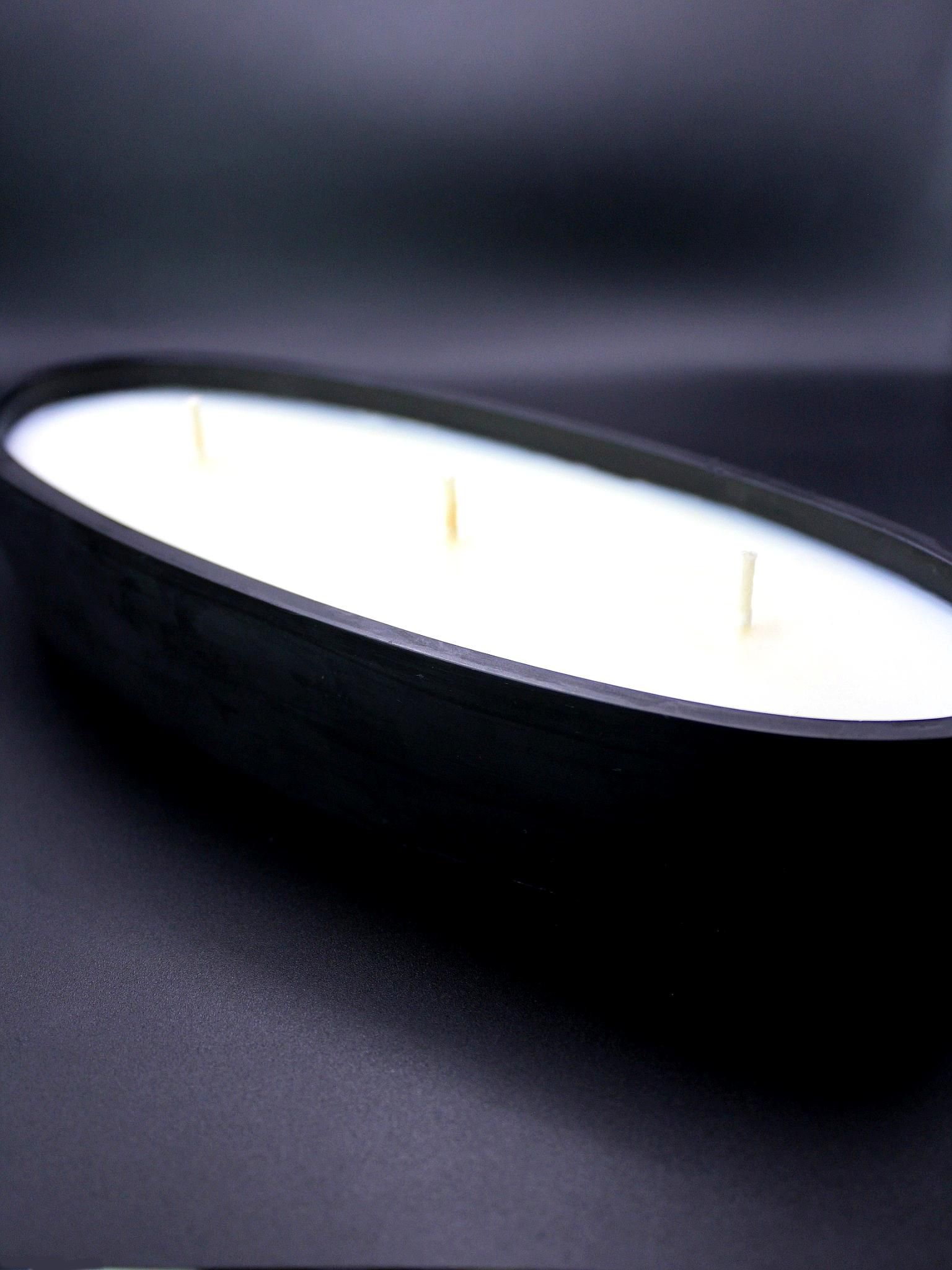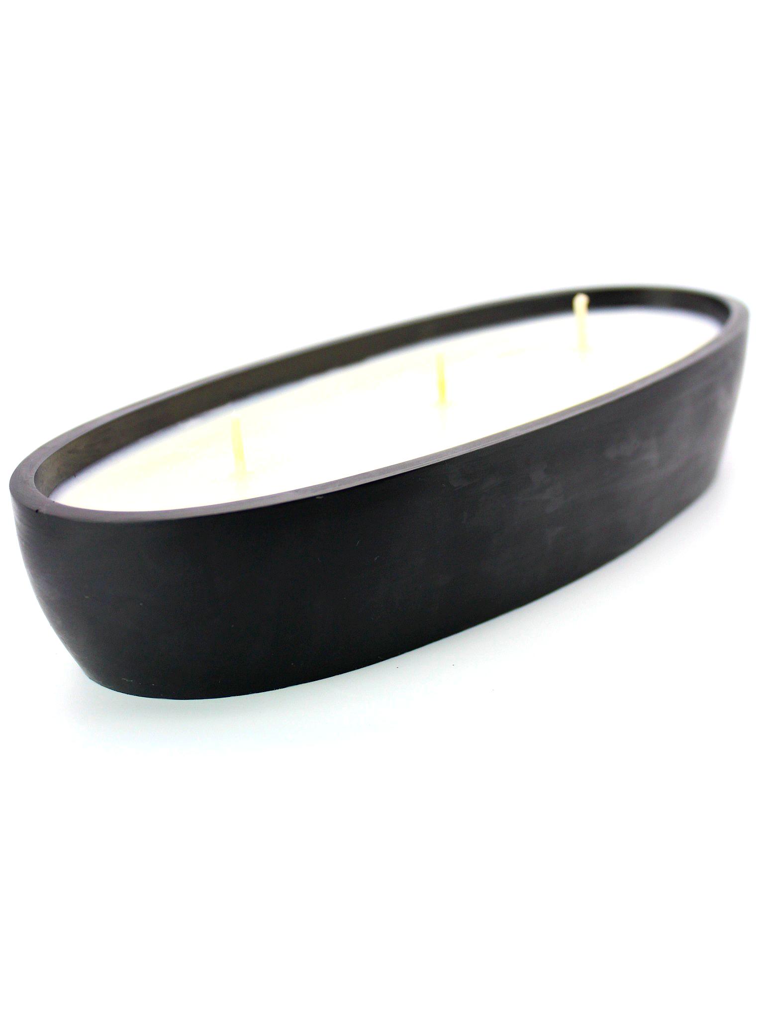 FORMA No. 06 – Black to świeca, która łączy minimalistyczną formę z wyrazistym wykończeniem. Ręcznie wykonane, podłużne naczynie z gipsu polimerowego w matowej czerni mieści trzy knoty, które równomiernie rozprowadzają światło i zapach.