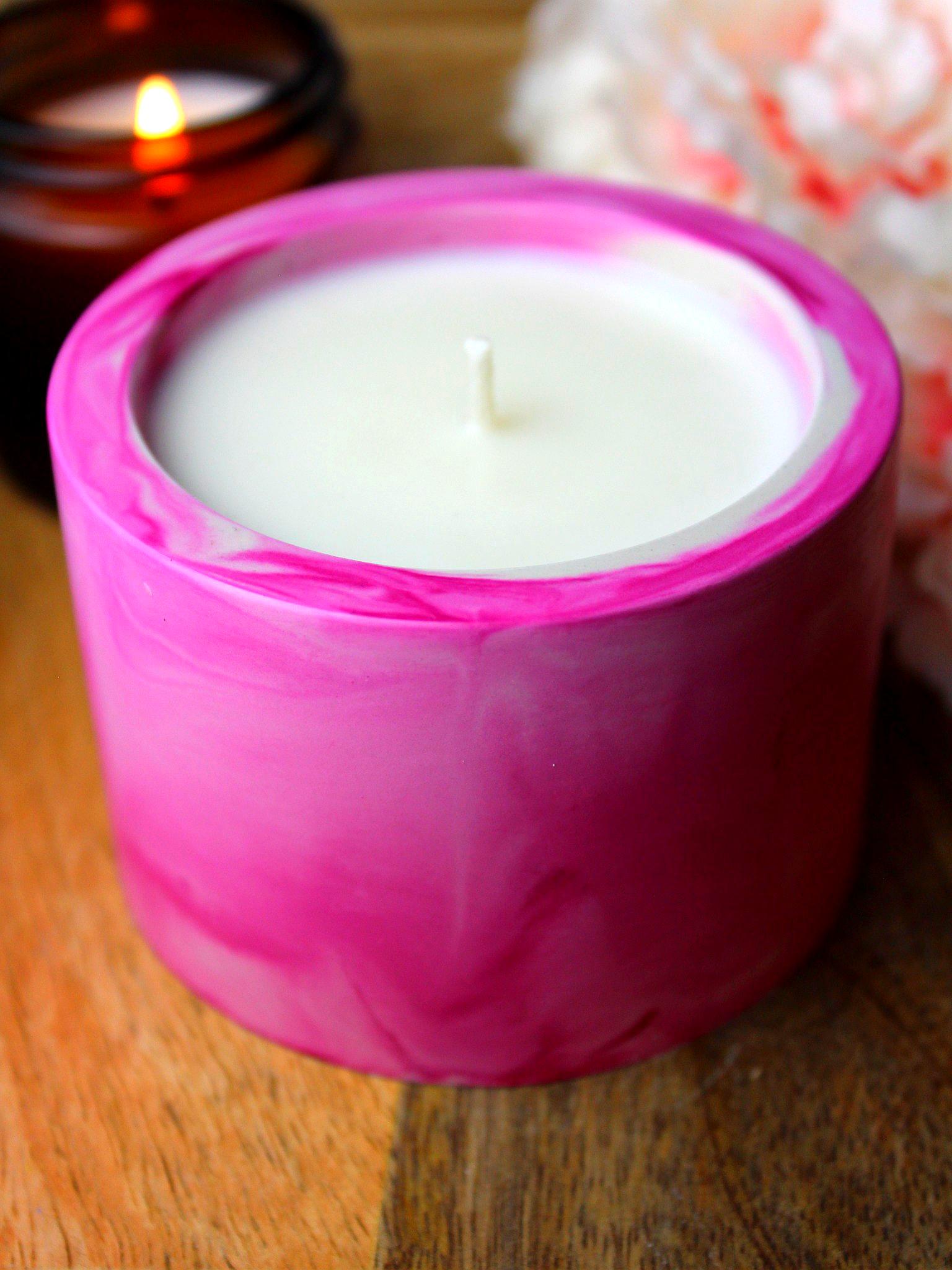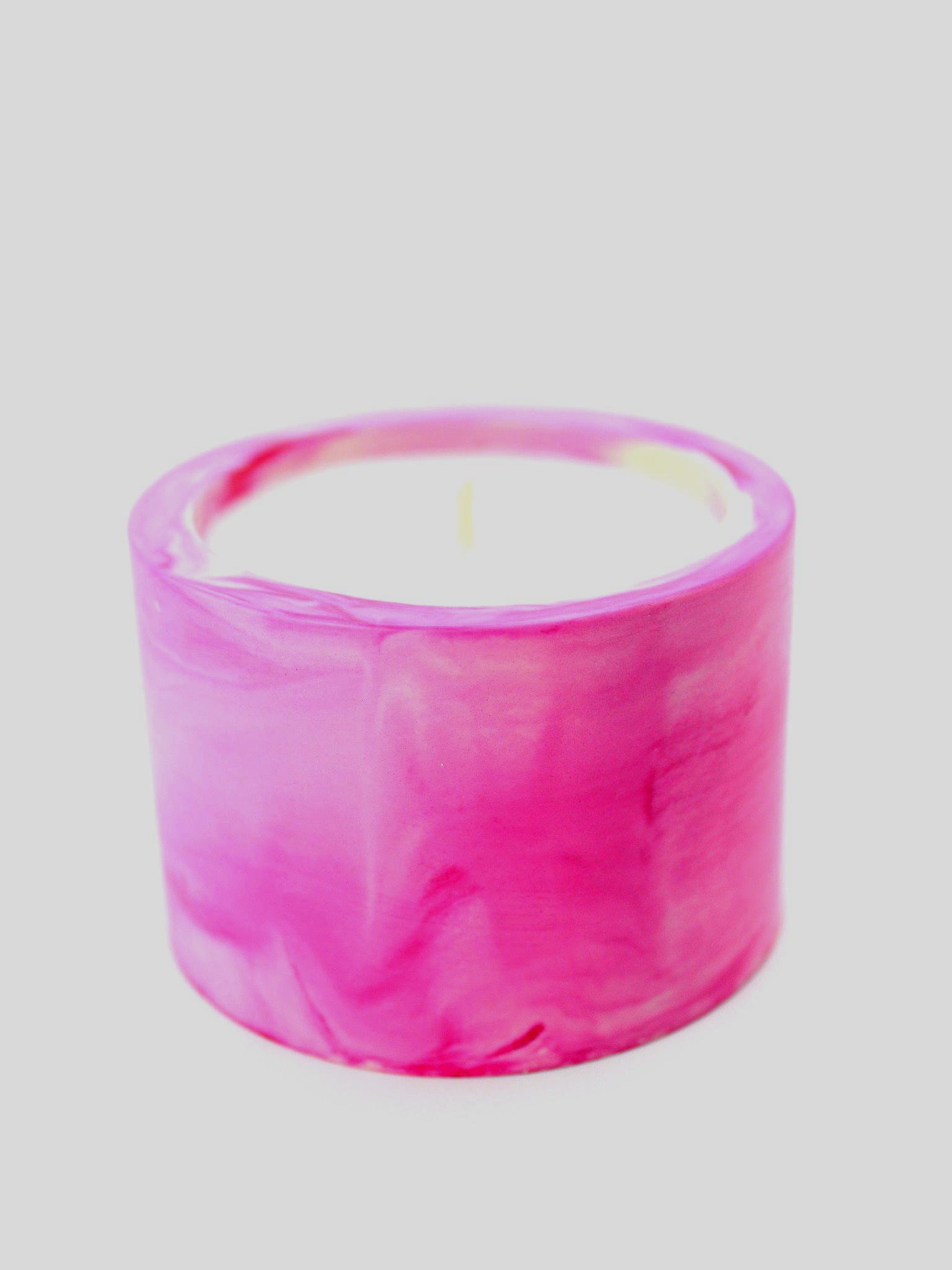 FORMA No. 10 – Bloom to świeca, która wyróżnia się już na pierwszy rzut oka. Jej naczynie w nasyconym, malinowo-różowym odcieniu o subtelnym marmurkowym wykończeniu wprowadza do wnętrza pulsujący akcent. Minimalistyczny, cylindryczny kształt równoważy energię koloru – tworząc wyjątkowo nowoczesną kompozycję.