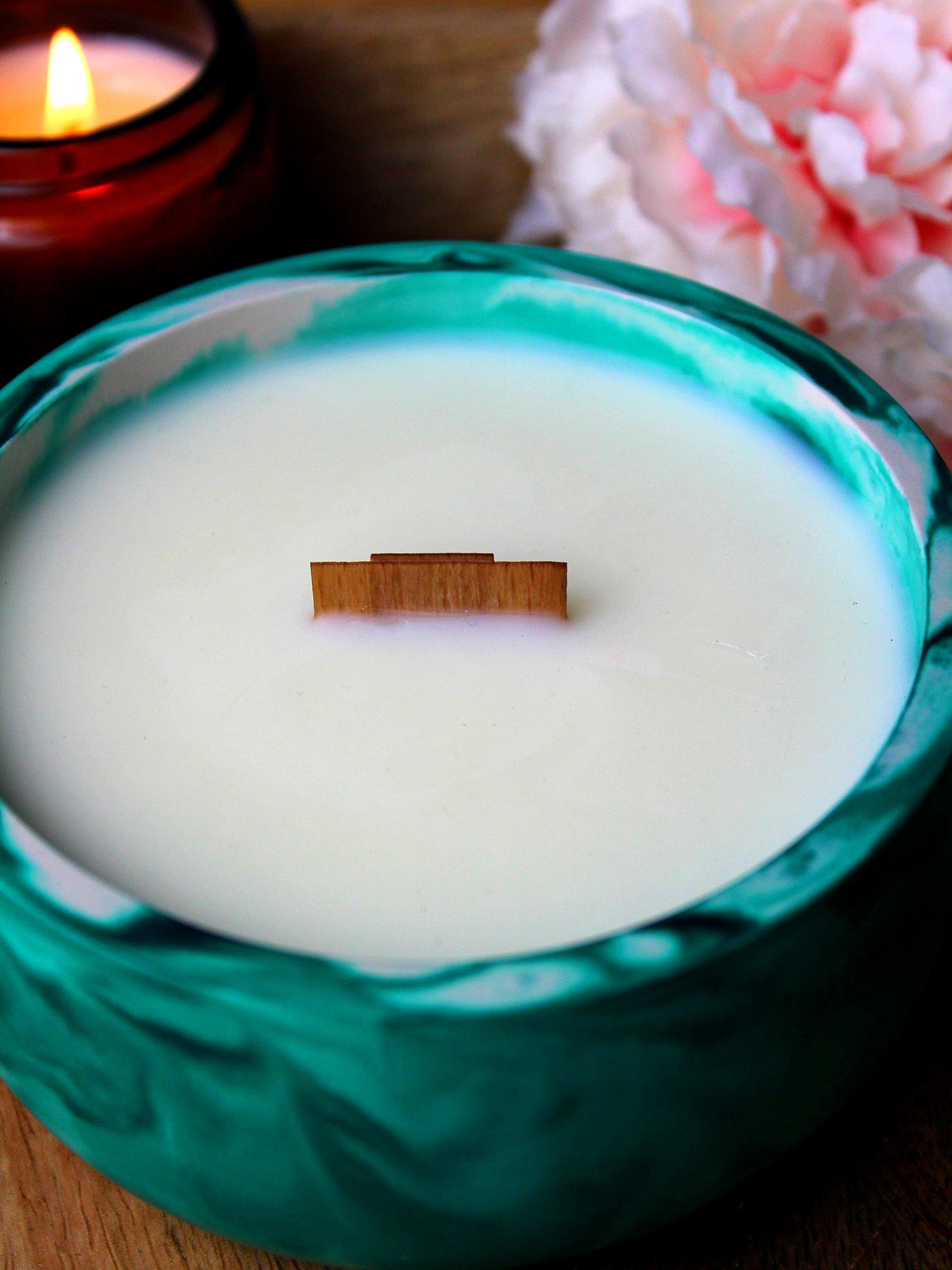 Zalewana z naturalnego wosku sojowego, oprawiona w ręcznie wykonane naczynie z gipsu polimerowego i uzupełniona drewnianym knotem, który podczas palenia delikatnie skwierczy. Idealna do chwil skupienia, relaksu lub jako elegancki akcent w codzienności.