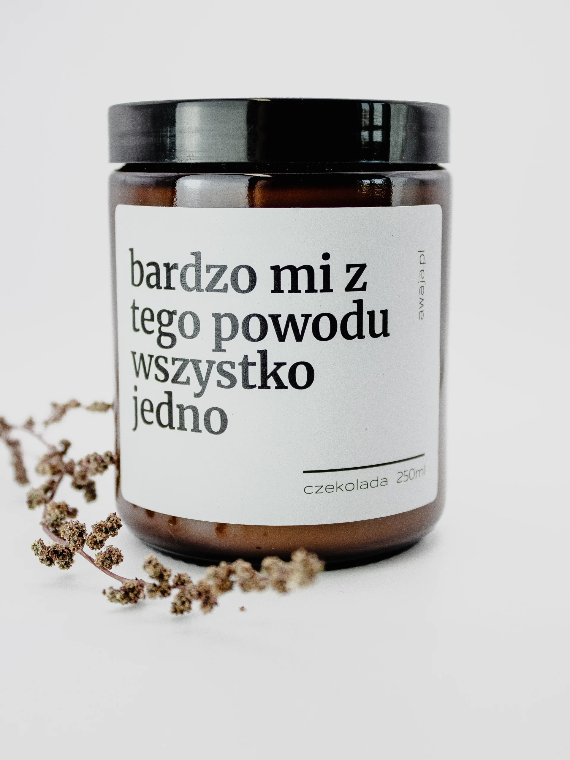 Ręcznie robiona świeca sojowa o zapachu czekolady – „bardzo mi z tego powodu wszystko jedno”